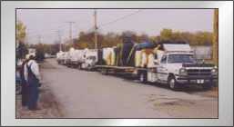By the mid-90s Jones Performance Products were delivering hoods throughout the country. Pictured at right is the start of a convoy to California that illustrates Jones’s “whatever it takes” approach. “Those are one-ton trucks, each hauling 45 feet of hoods,” Dave said. “In the midwest we drove through a snow storm that hit the whole country. It was very scary.”