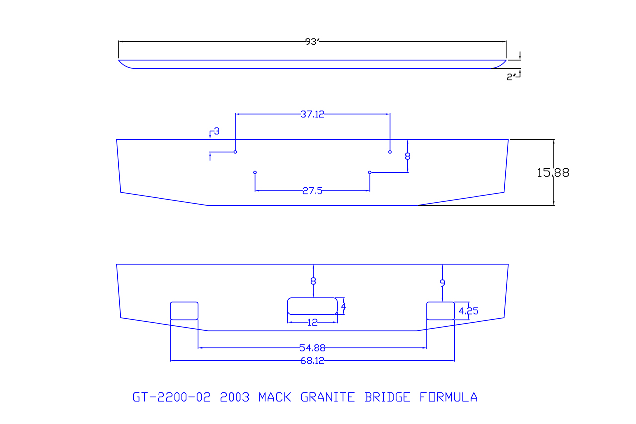 • 2003 and newer Mack Granite trucks with 16″ bumper